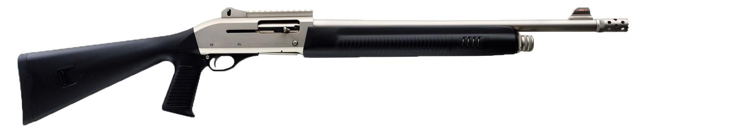 Pistol grip stock, Ghost ring sight, Picatinny rail, Extended tactical choke tube, Nickel finish